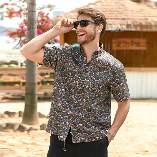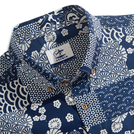 Two-Tone Woven Cotton & Linen Short Sleeve Shirt