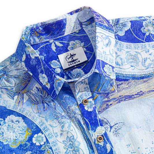 BLUE GEOMETRY MEN'S HALF SLEEVES PRINTED SHIRT