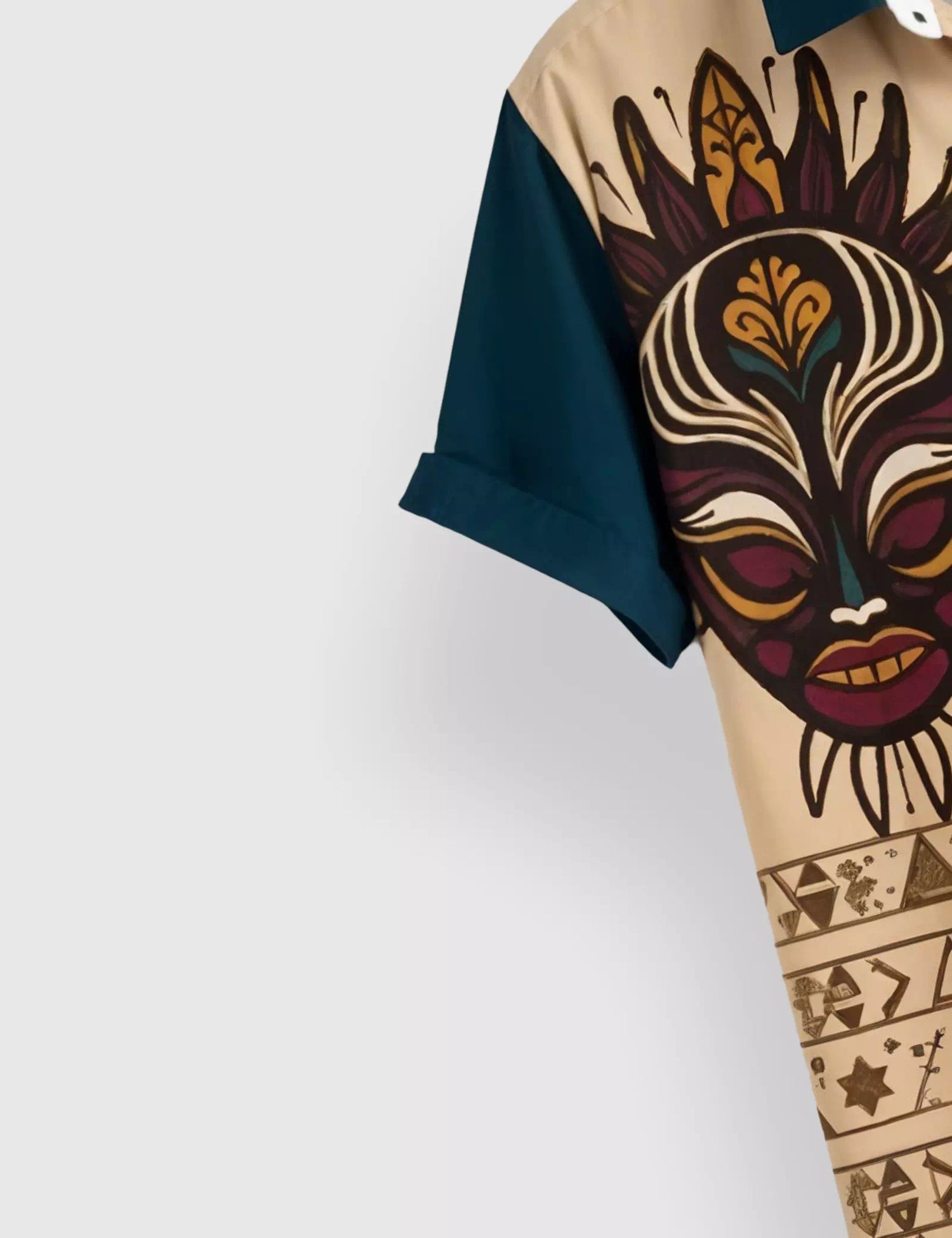 CREAM FACEMASK DESIGNER MEN'S HALF SLEEVES PRINTED SHIRT