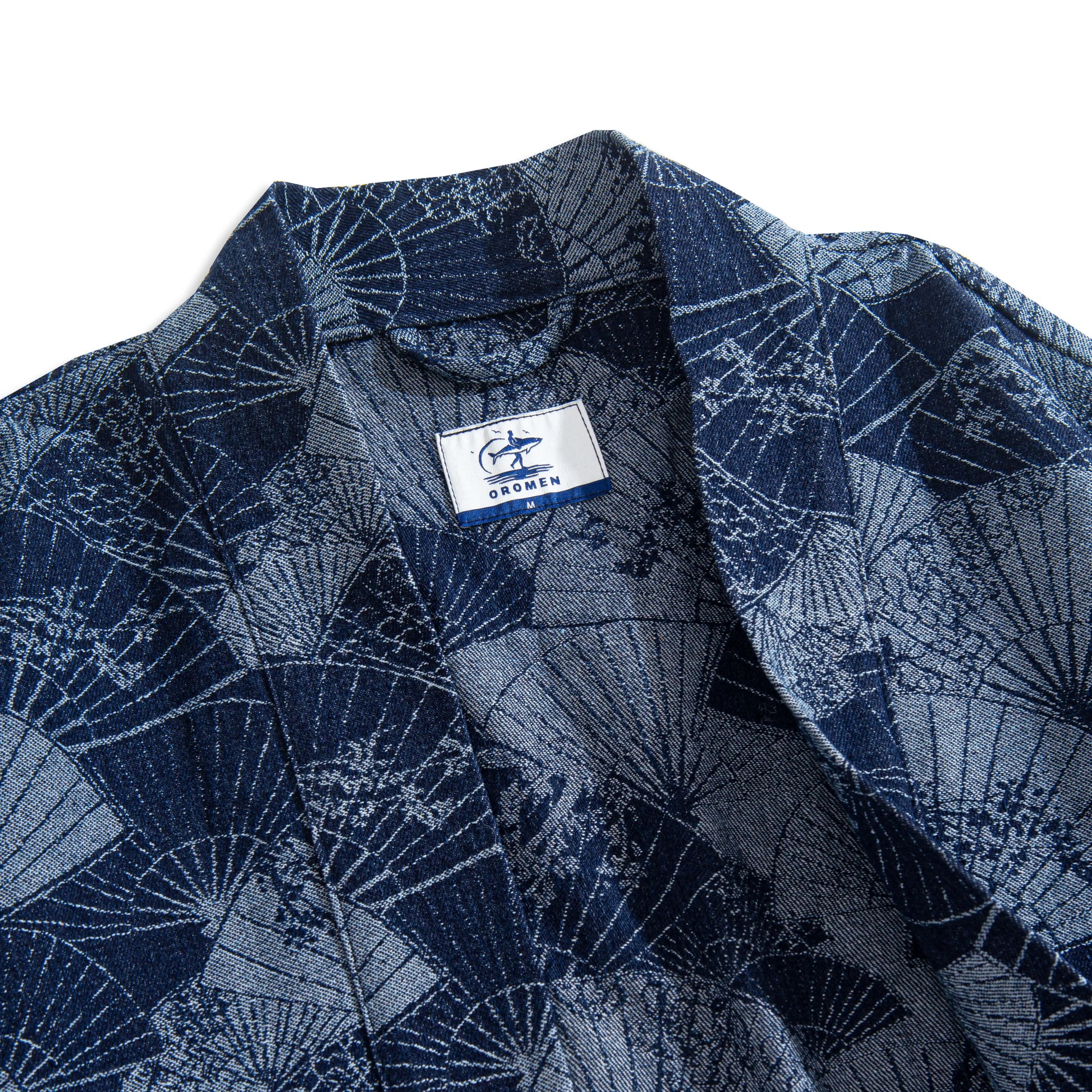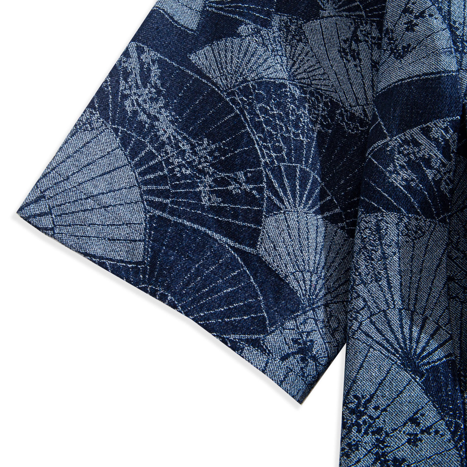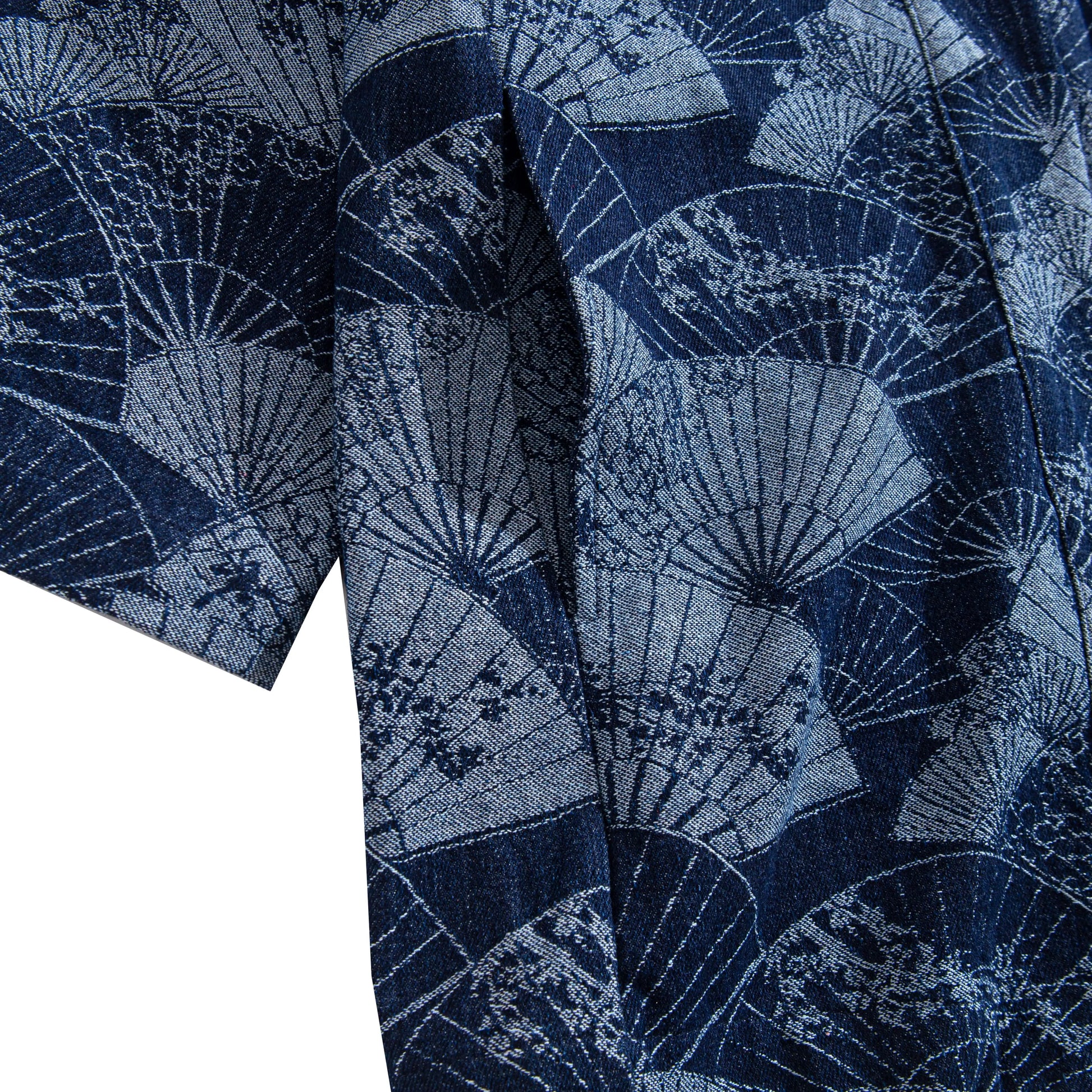 Carefully sewn from high-quality cotton and hand-dyed in the Japanese artist design – the iconic 'Flower Umbrella' pattern – this [Kimono Haori Jacket] presents a uniquely rustic texture due to its subtly uneven weave.