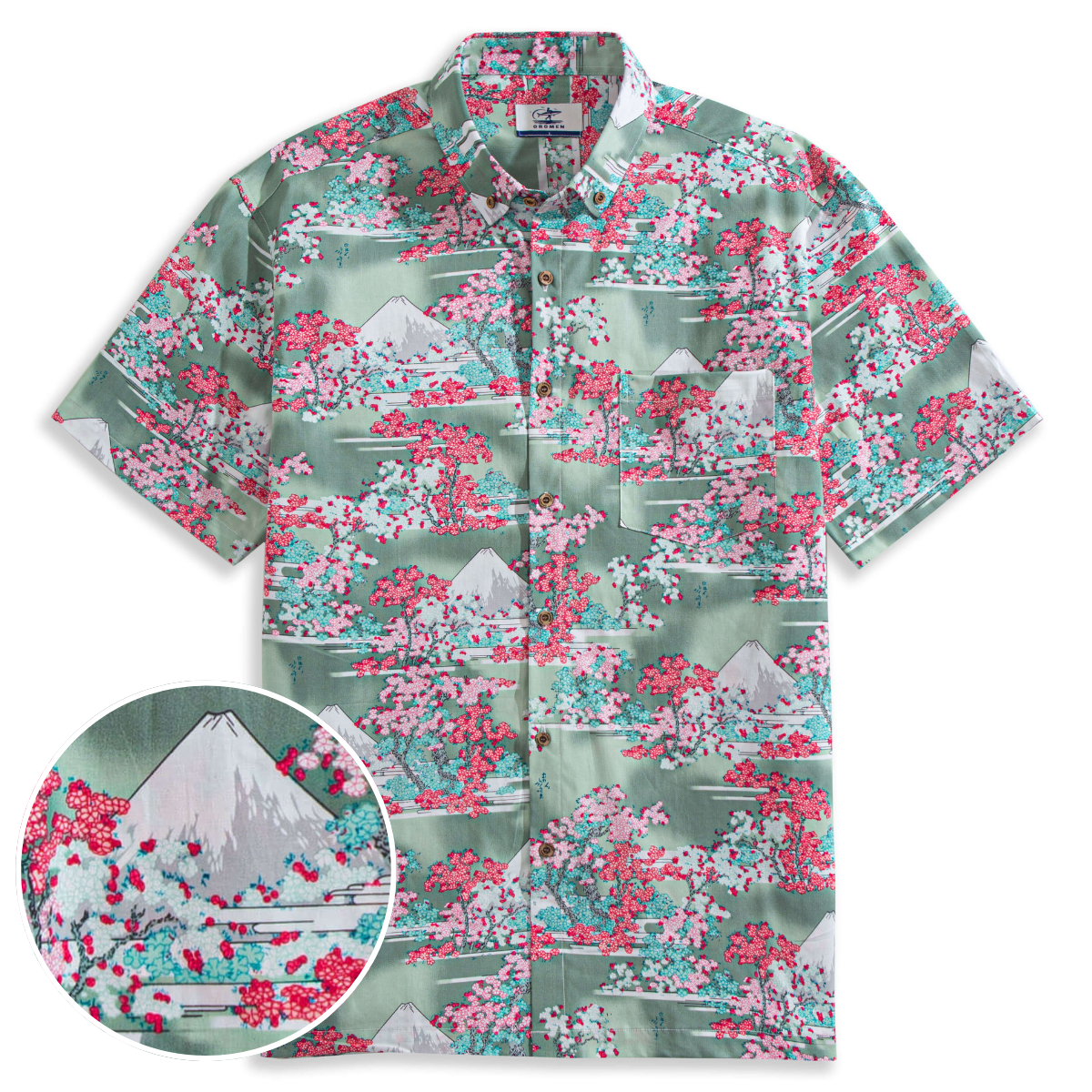Where East meets West, this Hawaiian shirt captures the serene majesty of Mount Fuji and the fleeting beauty of cherry blossoms.