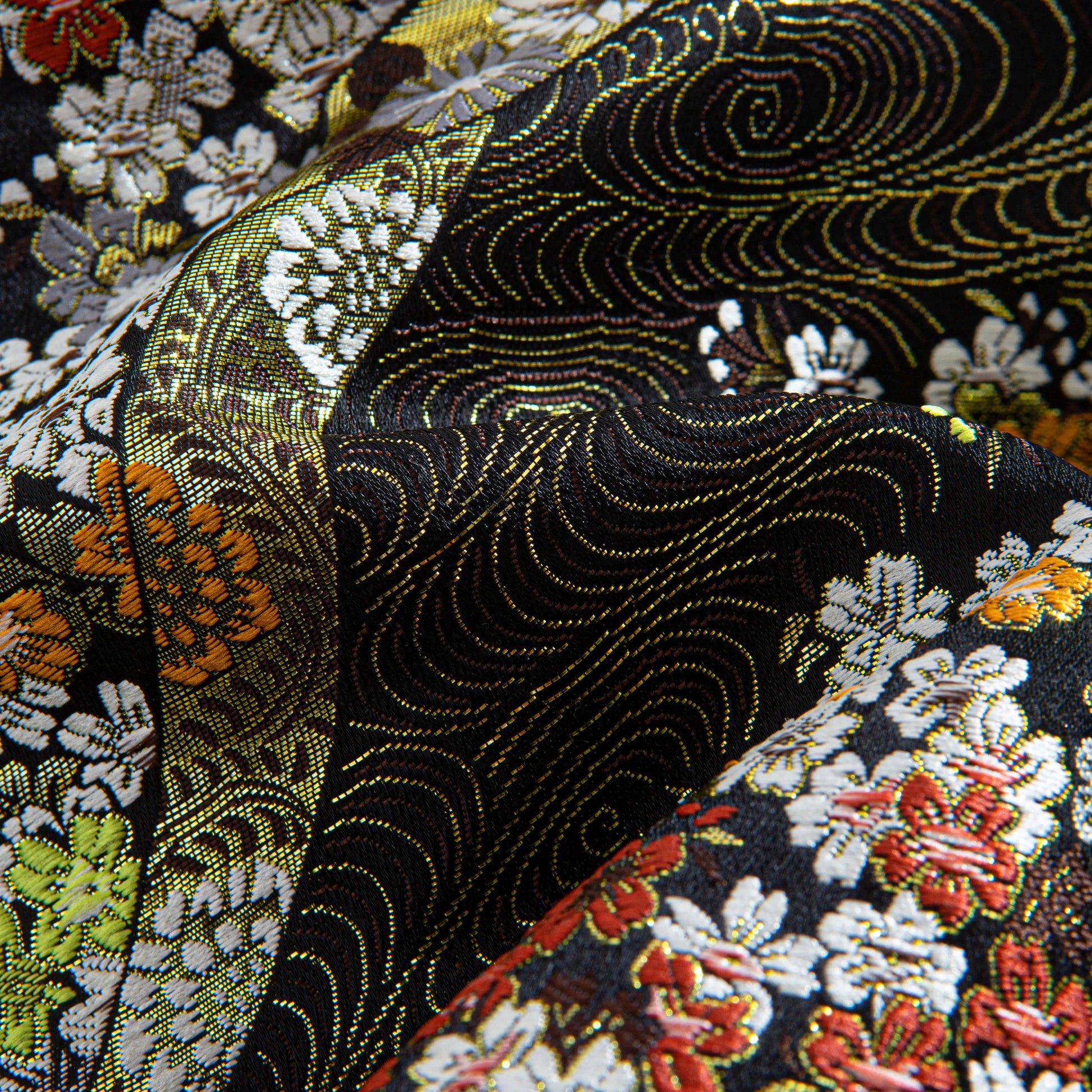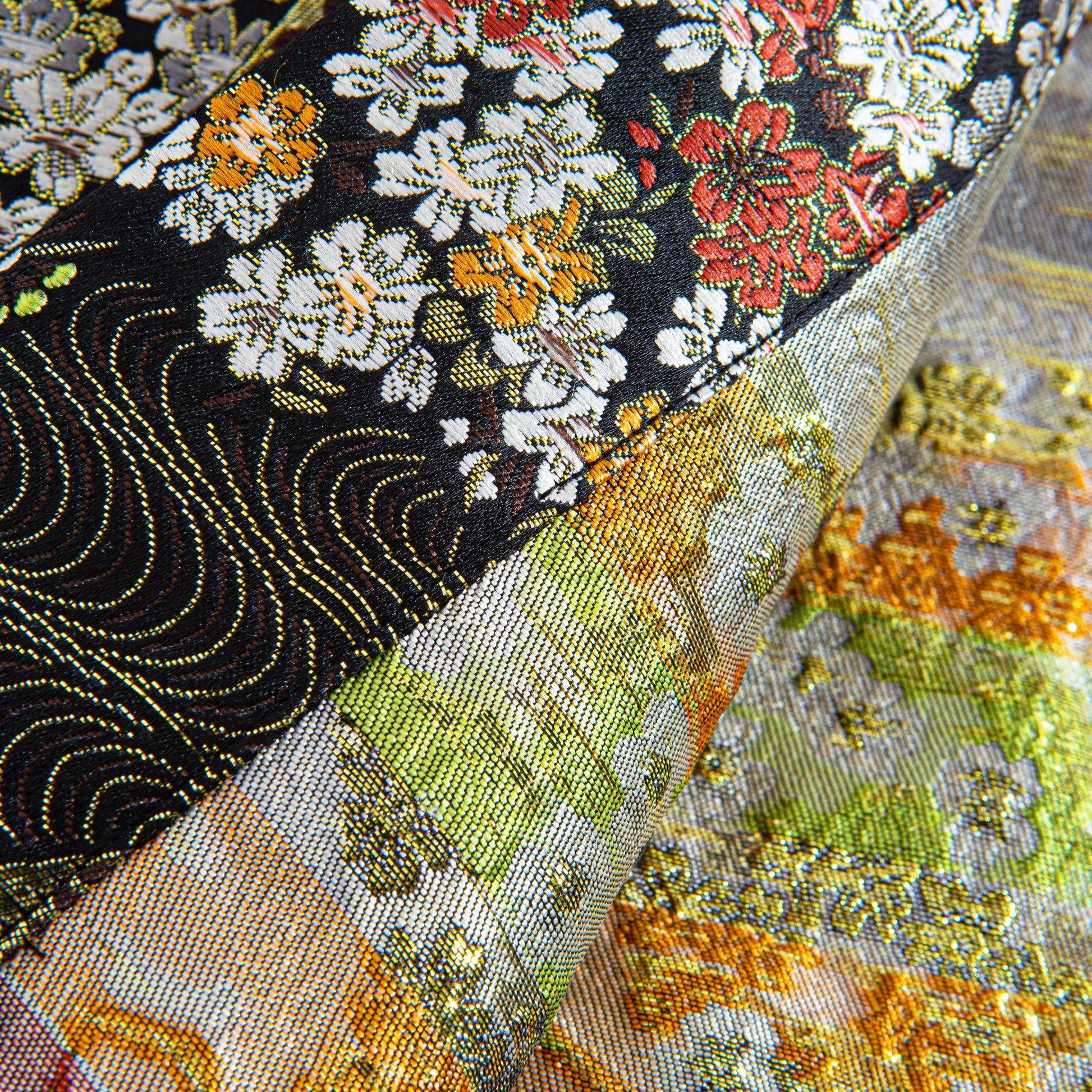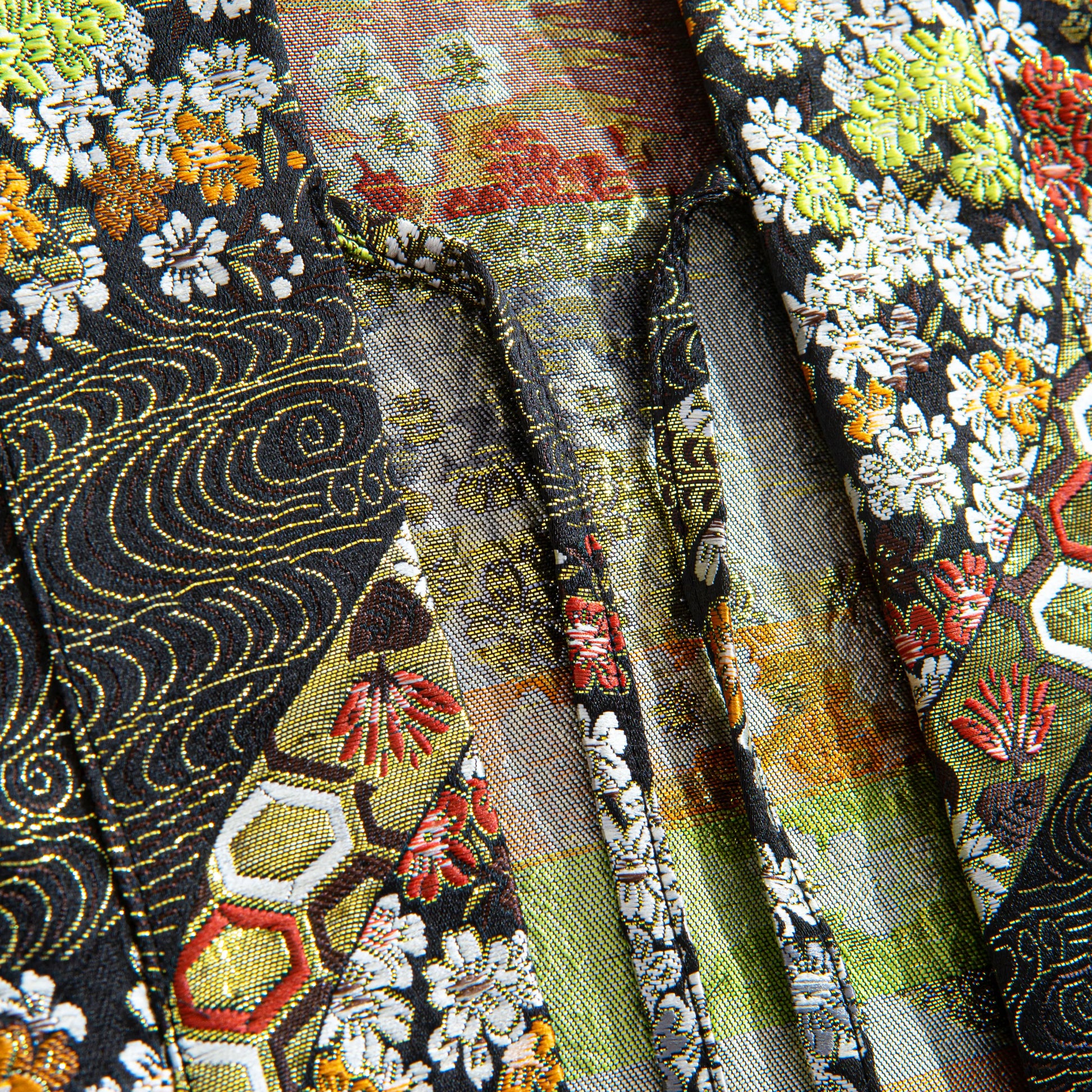 [ Nishijin Ori ], the world-class fine fabric, is made in the Kyoto Nishijin area and is manufactured through a process with more than 20 steps such as twisting, dyeing, design, weaving, etc. [ Nishijin Ori ] comes in a variety of styles, from flashy patterns that incorporate gold thread, to delicate and subtle silk patterns.