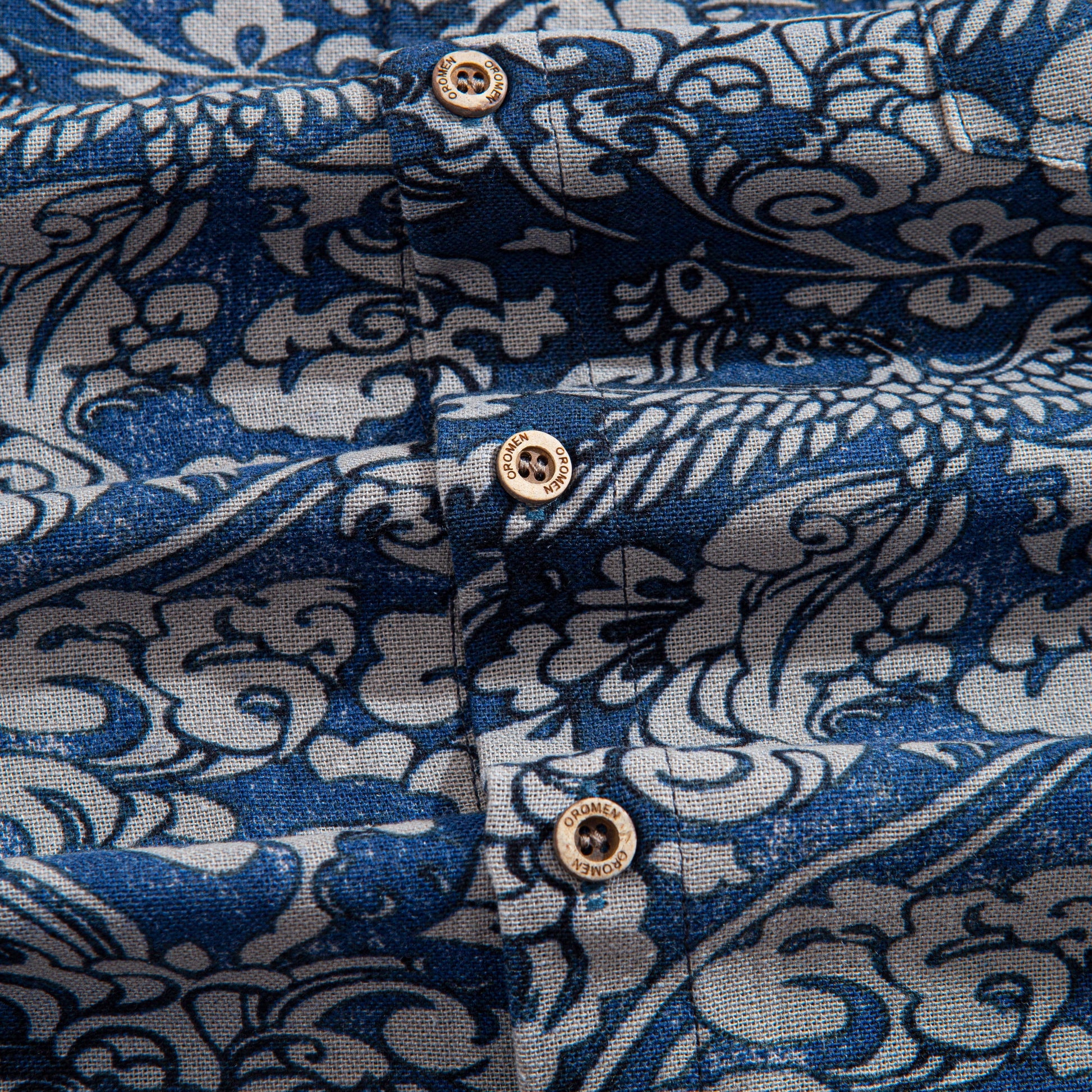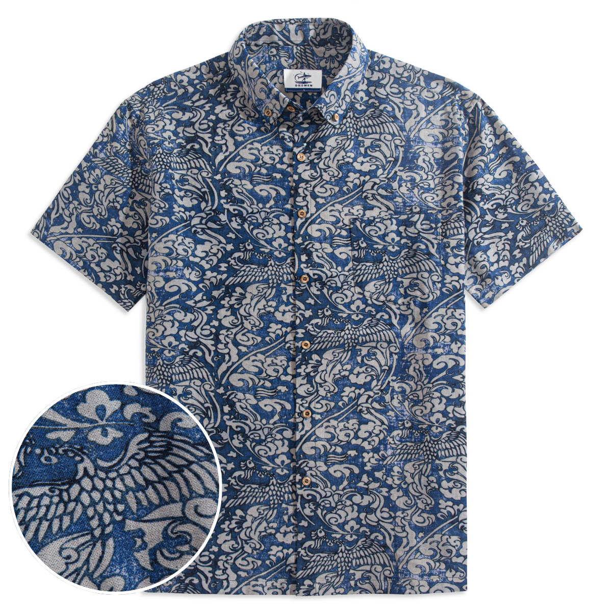 This Phoenix Rebirth Aloha Shirt artfully blends Polynesian spirit with symbolic storytelling. The centerpiece features a majestic phoenix emerging from stylized flames, embodying transformation and resilience - a metaphor for rising renewed from life's challenges through courage and self-reinvention. Rendered in soothing indigo and crisp ivory tones, the design maintains sophisticated subtlety while revealing intricate details upon closer inspection.