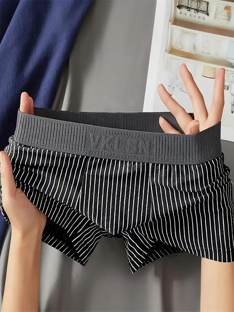Designed with a modern striped pattern and a wide, soft waistband, these boxer briefs offer both functionality and fashion. Whether for daily wear or lounging, they provide exceptional support and lasting comfort.