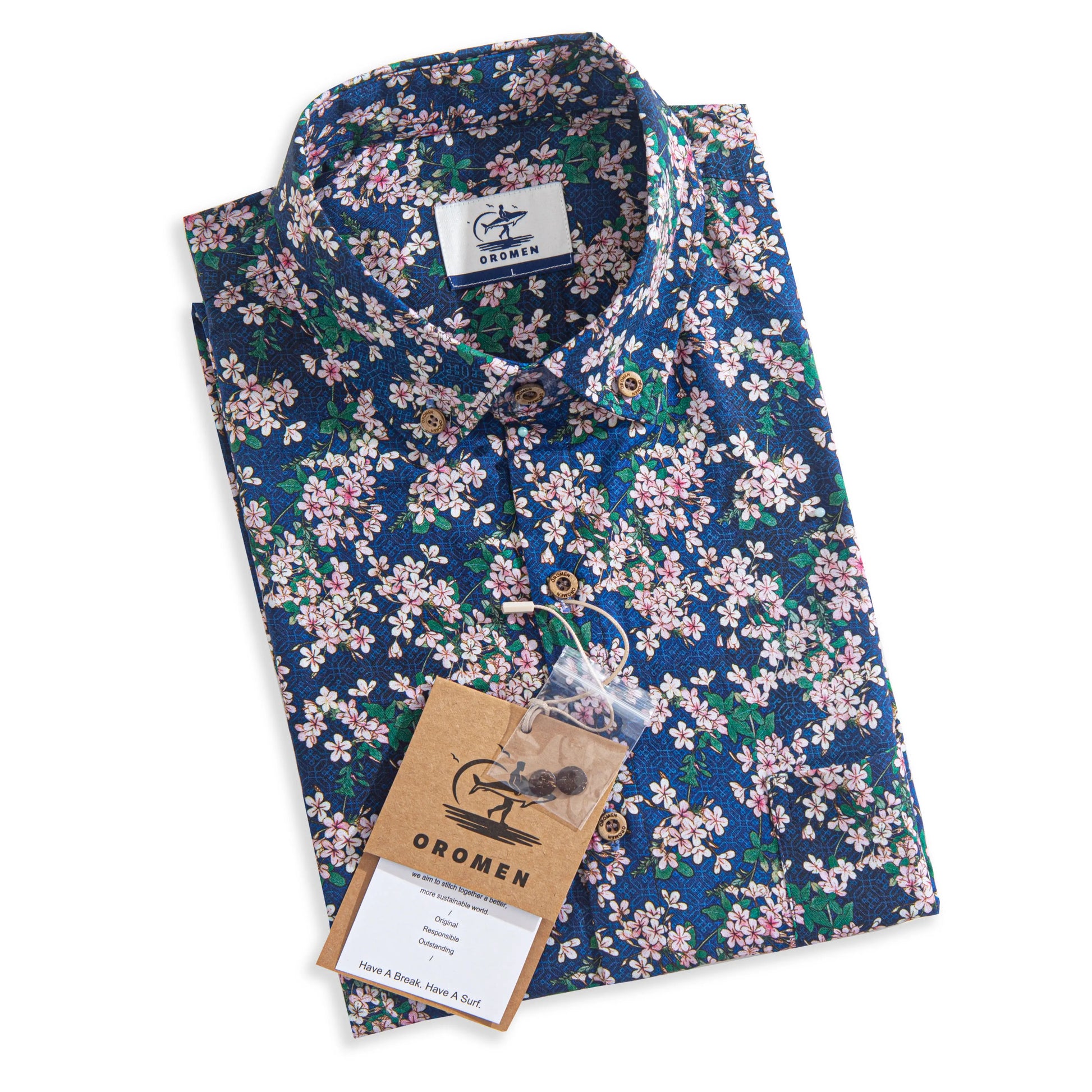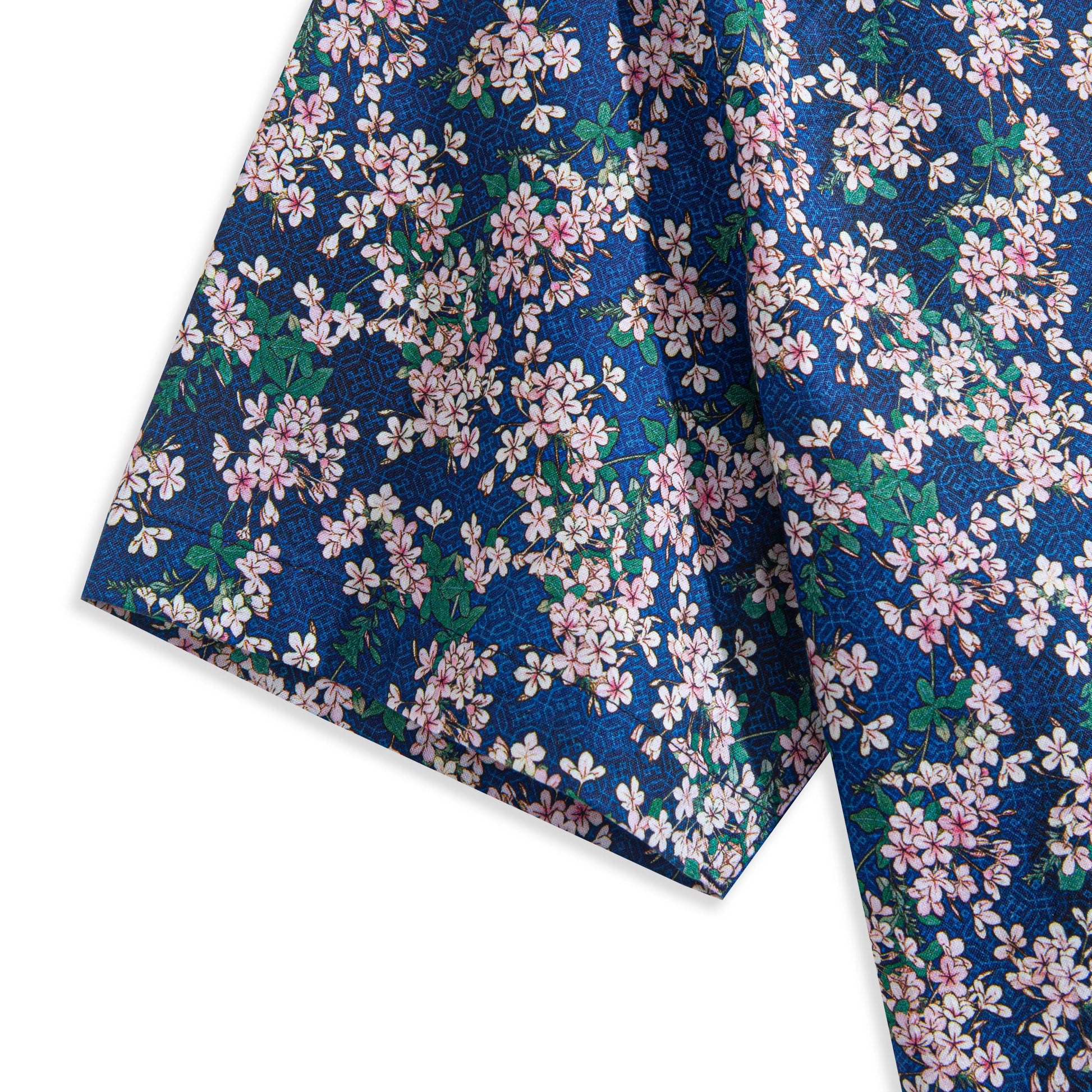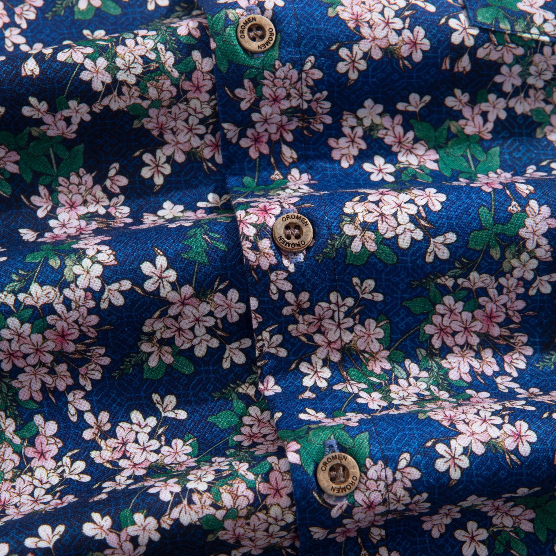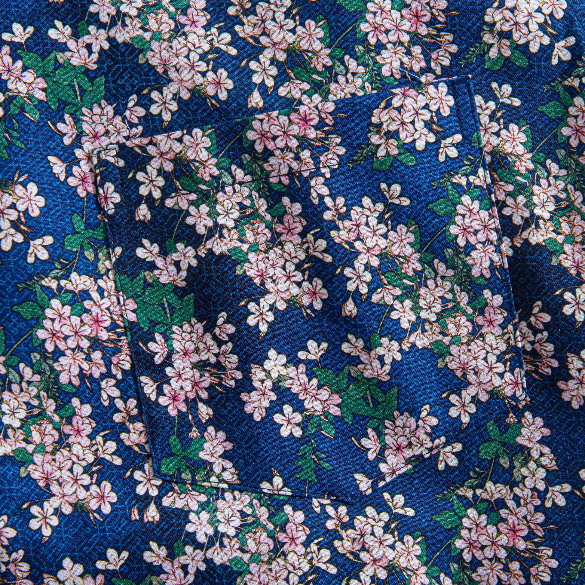 The Japanese Sakura floral pattern is like a tranquil courtyard, where flowers interweave to create an elegant and serene Eastern painting. Wearing this shirt will immerse you in a Sakura of intertwined blossoms.