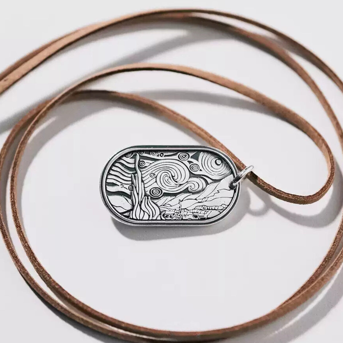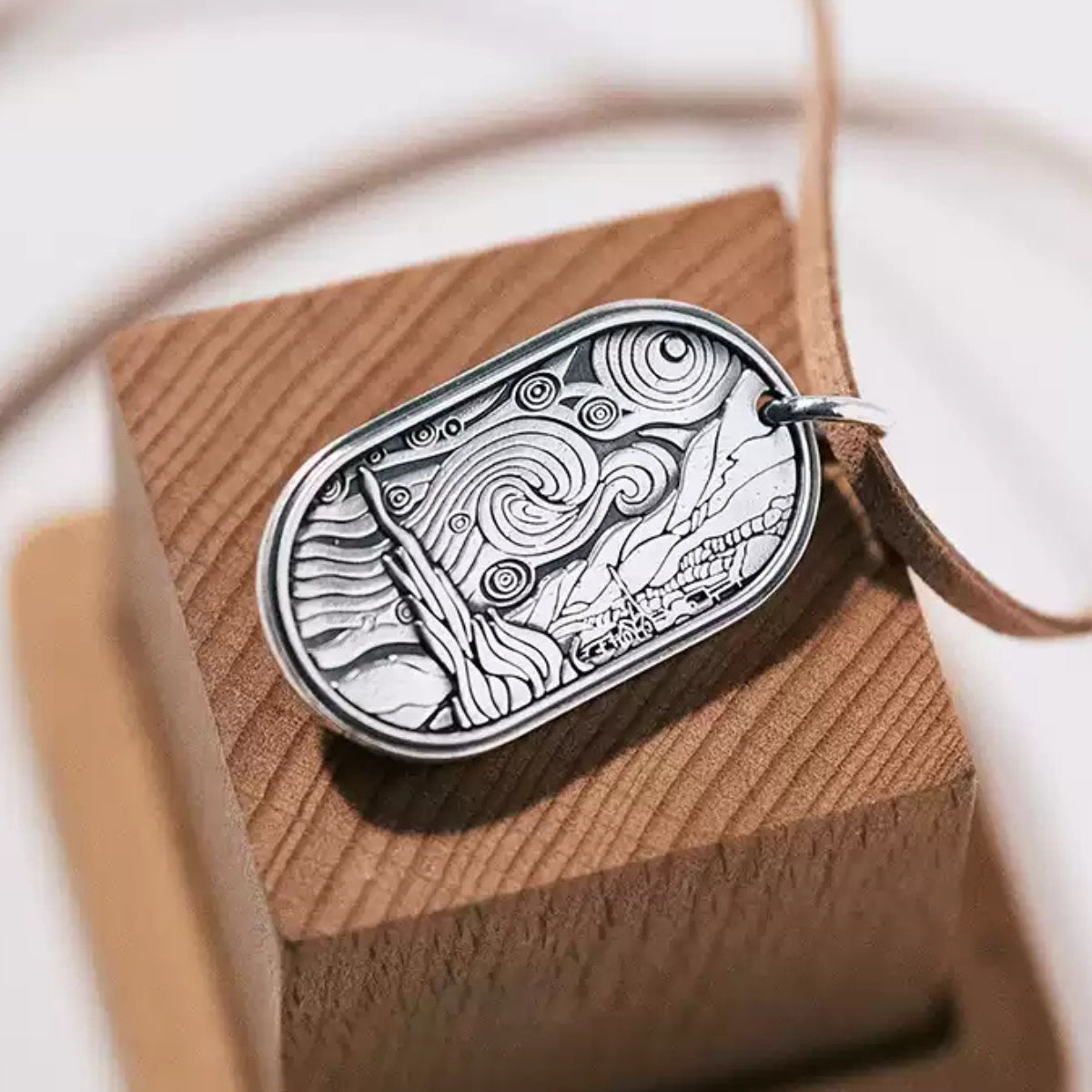 The swirling clouds and bright stars in the night sky represent eternity and transcendence, while the tranquility of the town below suggests the peaceful and simple atmosphere of peace in life.