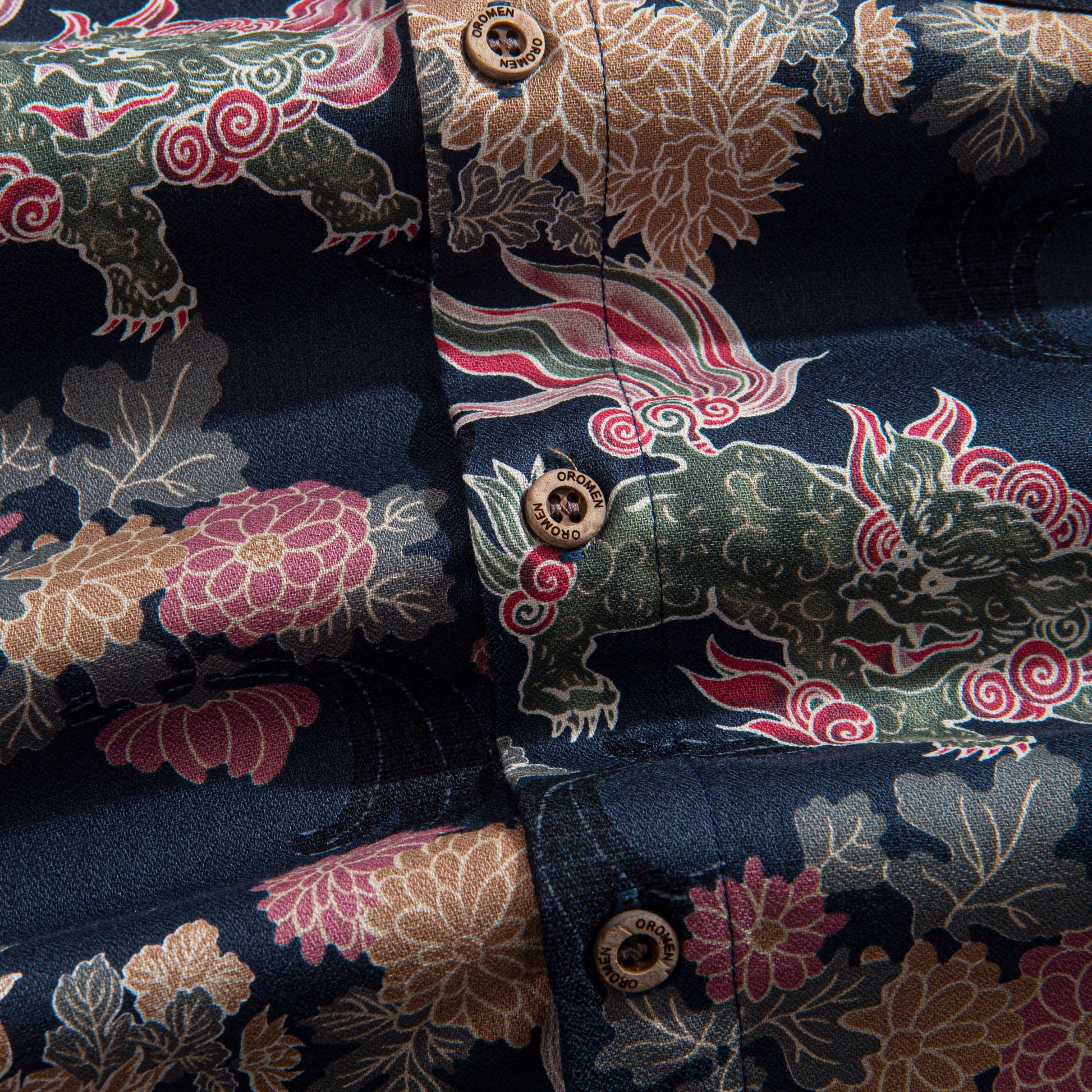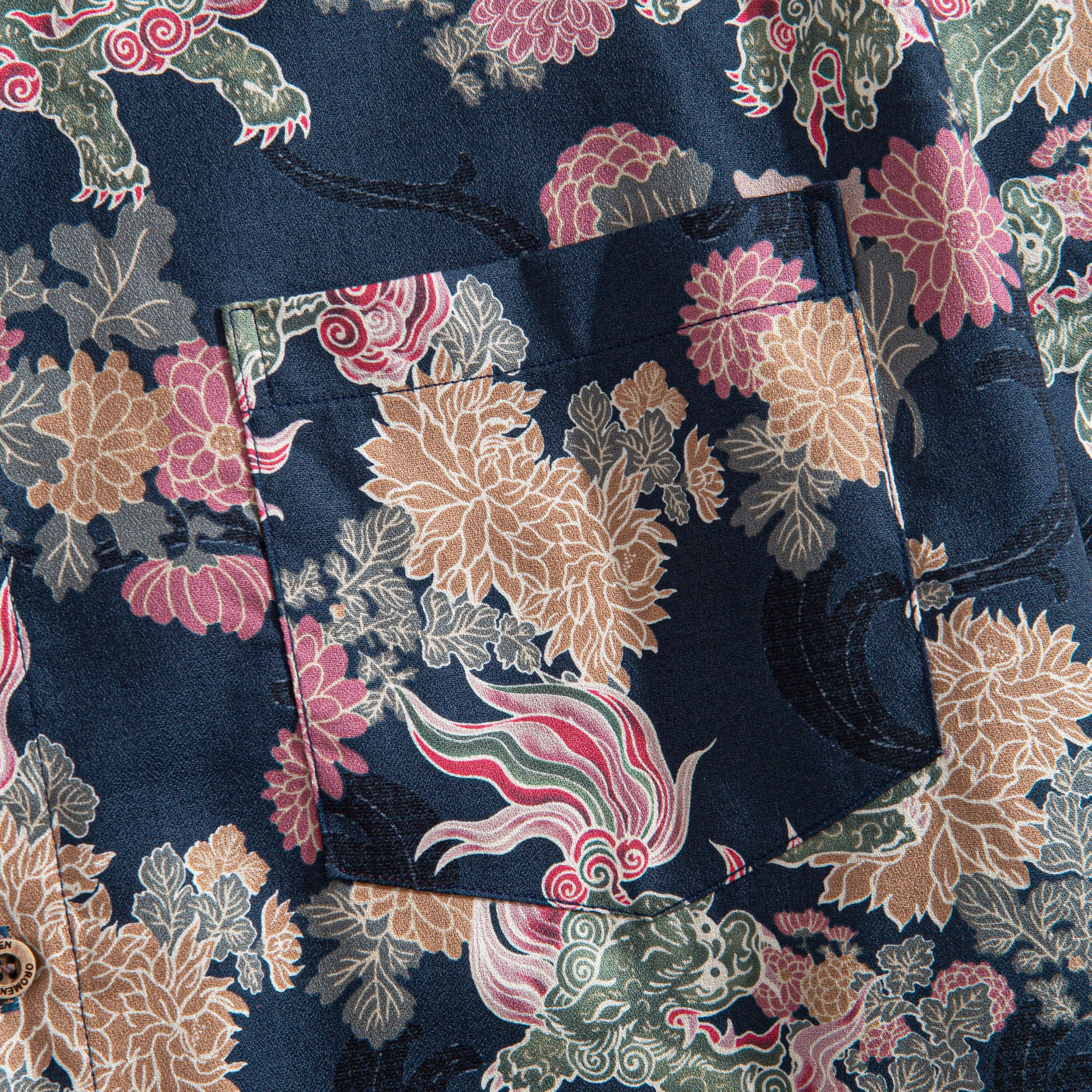 This exquisite ALOHA shirt is a vibrant celebration of the mythical Qilin, a revered creature from the ancient Chinese classic, The Classic of Mountains and Seas. The Qilin, often associated with prosperity, wisdom, and good fortune, is beautifully depicted amidst a cascade of blooming petals, symbolizing harmony and the flourishing of life. The intricate design not only captures the majestic essence of this legendary beast but also infuses the shirt with a sense of cultural richness and timeless elegance.
