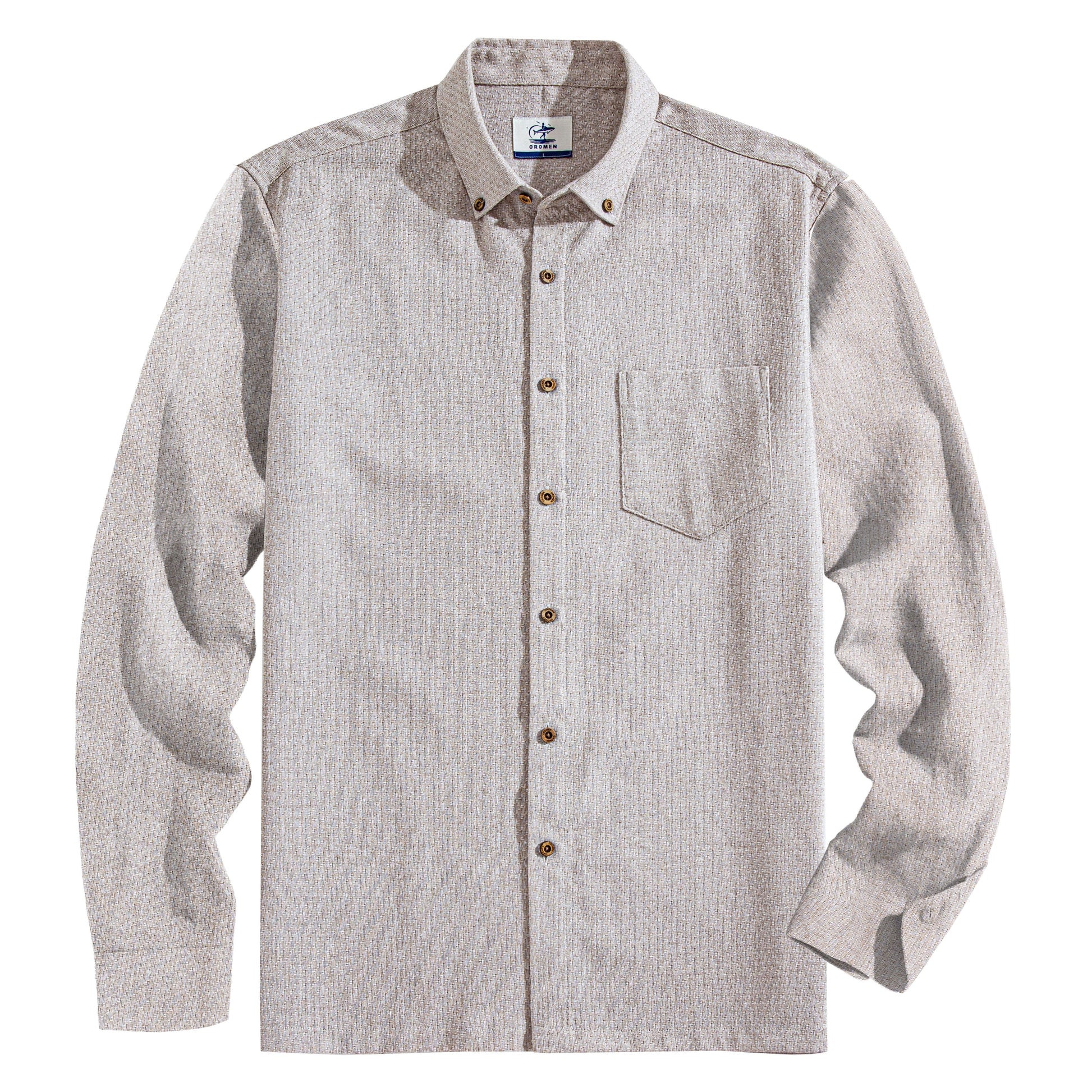 Two-Tone Woven Cotton & Linen Long Sleeve Shirt