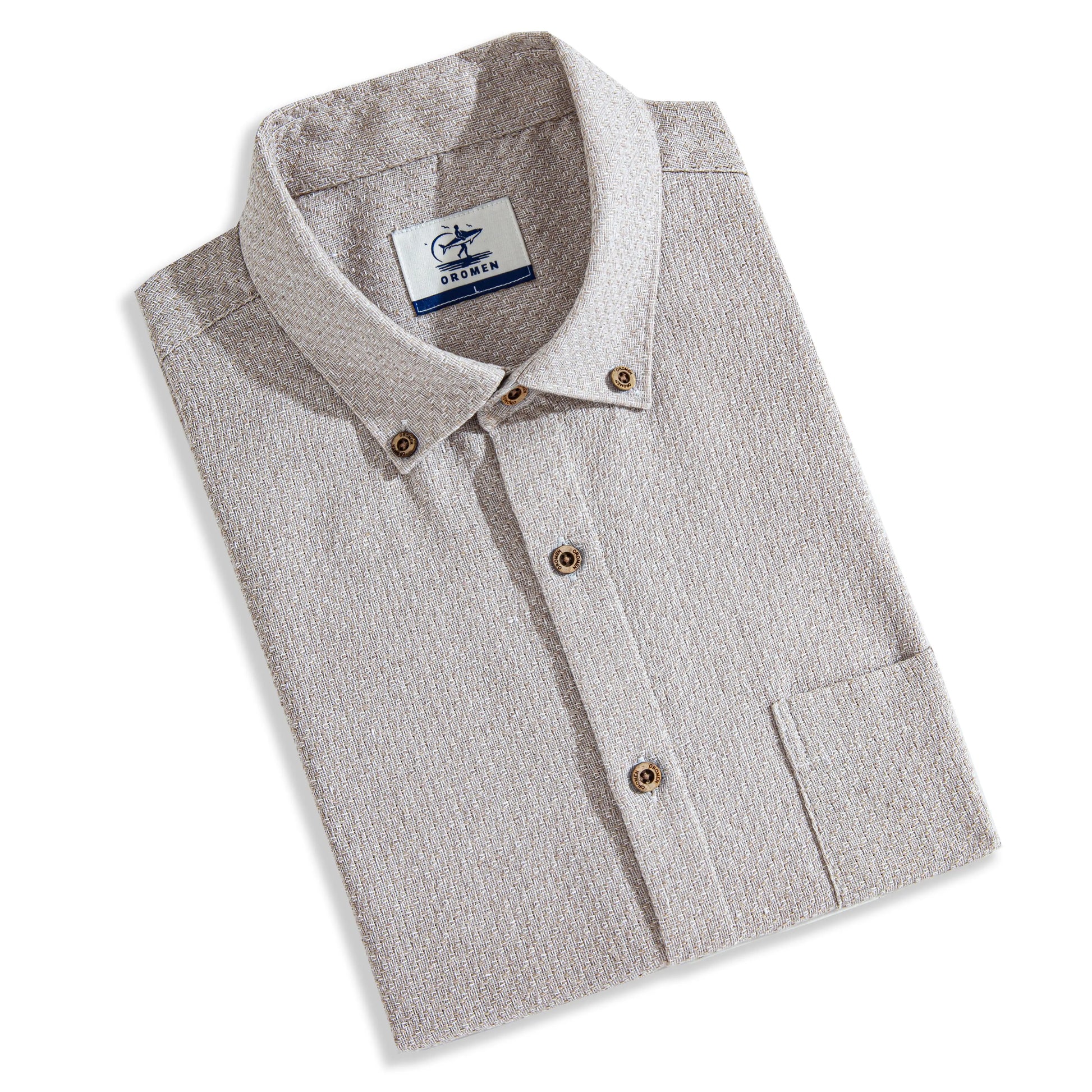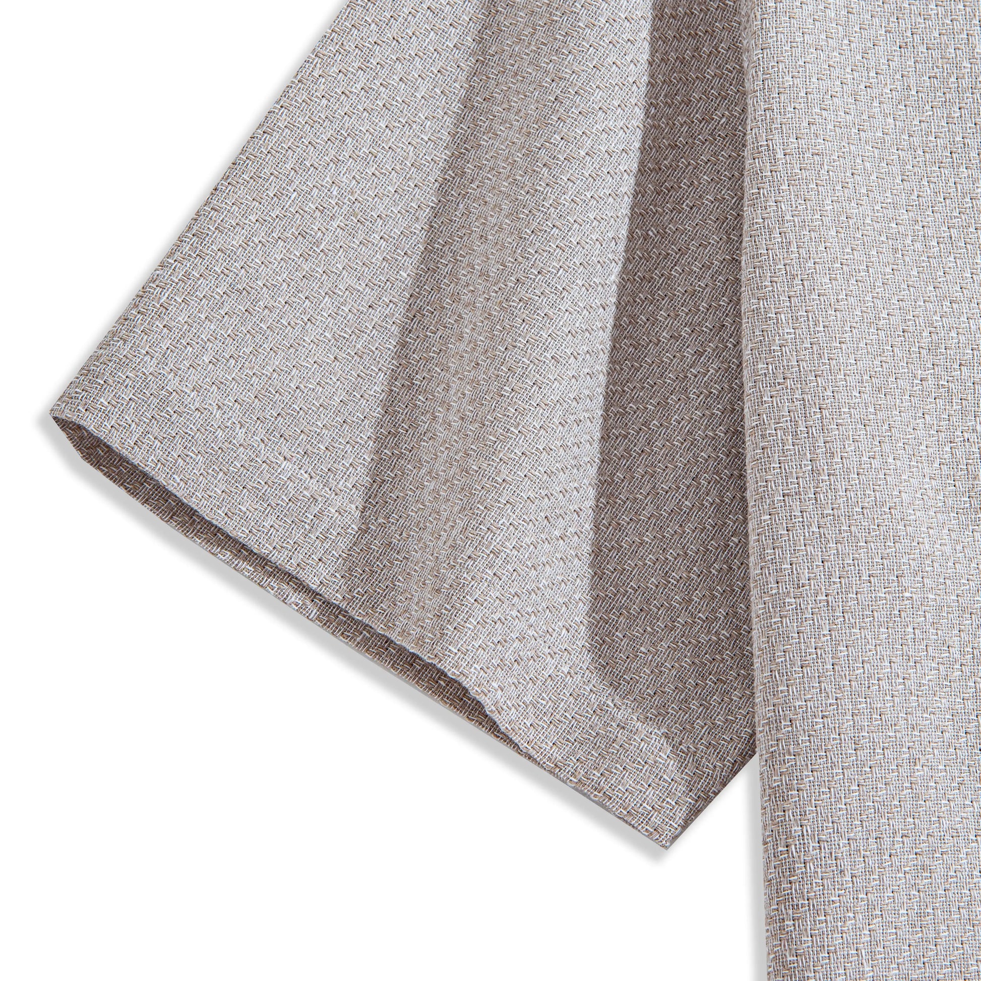A two-tone woven cotton and linen shirt perfect for summer, woven with beige and white needlework. Quality shirt that can be worn in a myriad of ways, open with tee, button down closed for intelligent casual - perfect summer attire for any situation.