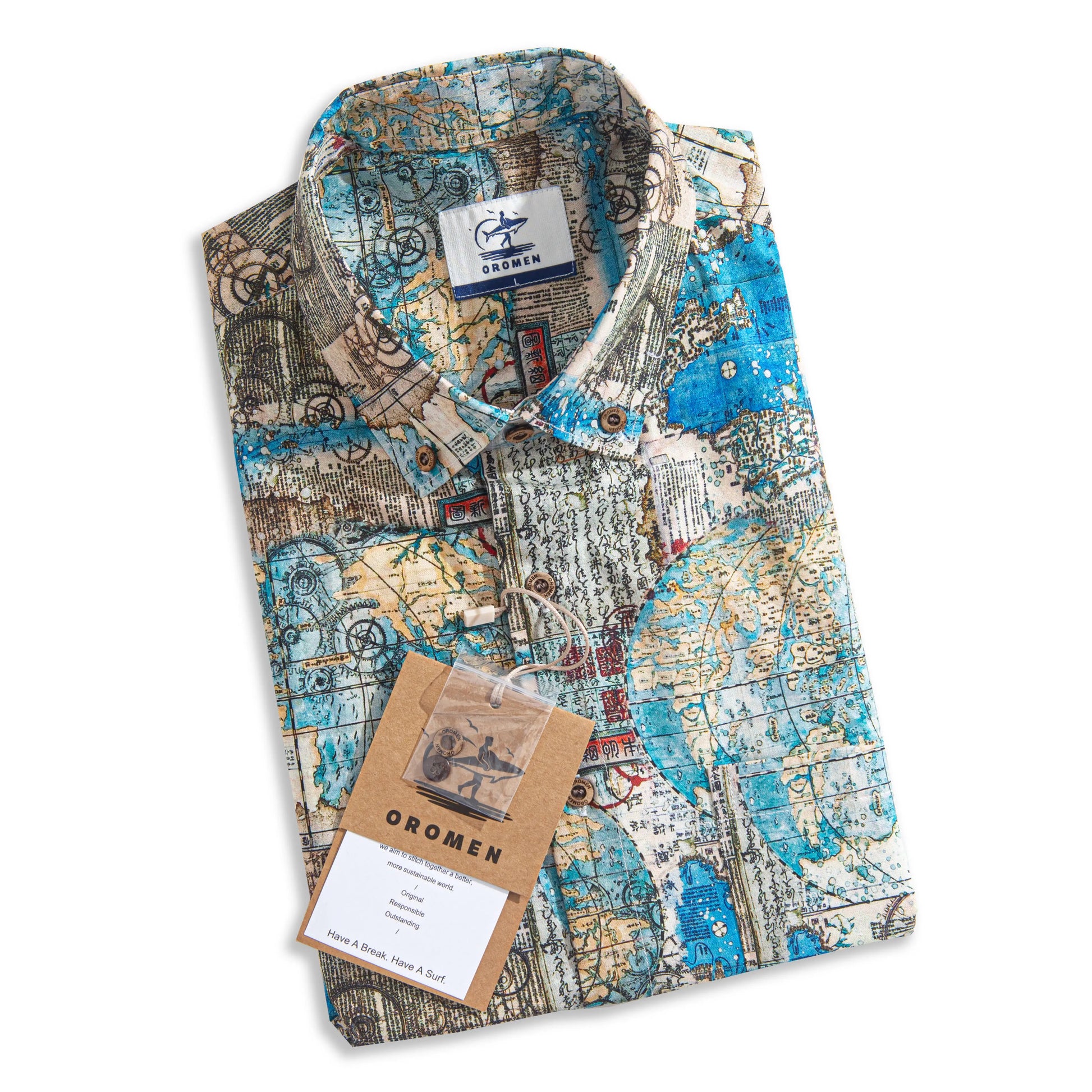 Dive into a world where poetry meets adventure with the "Oceanic Odes" Aloha Shirt. This vibrant design is a celebration of the written word and the fearless spirit of exploration, blending the artistry of traditional poetry with the boldness of the high seas.