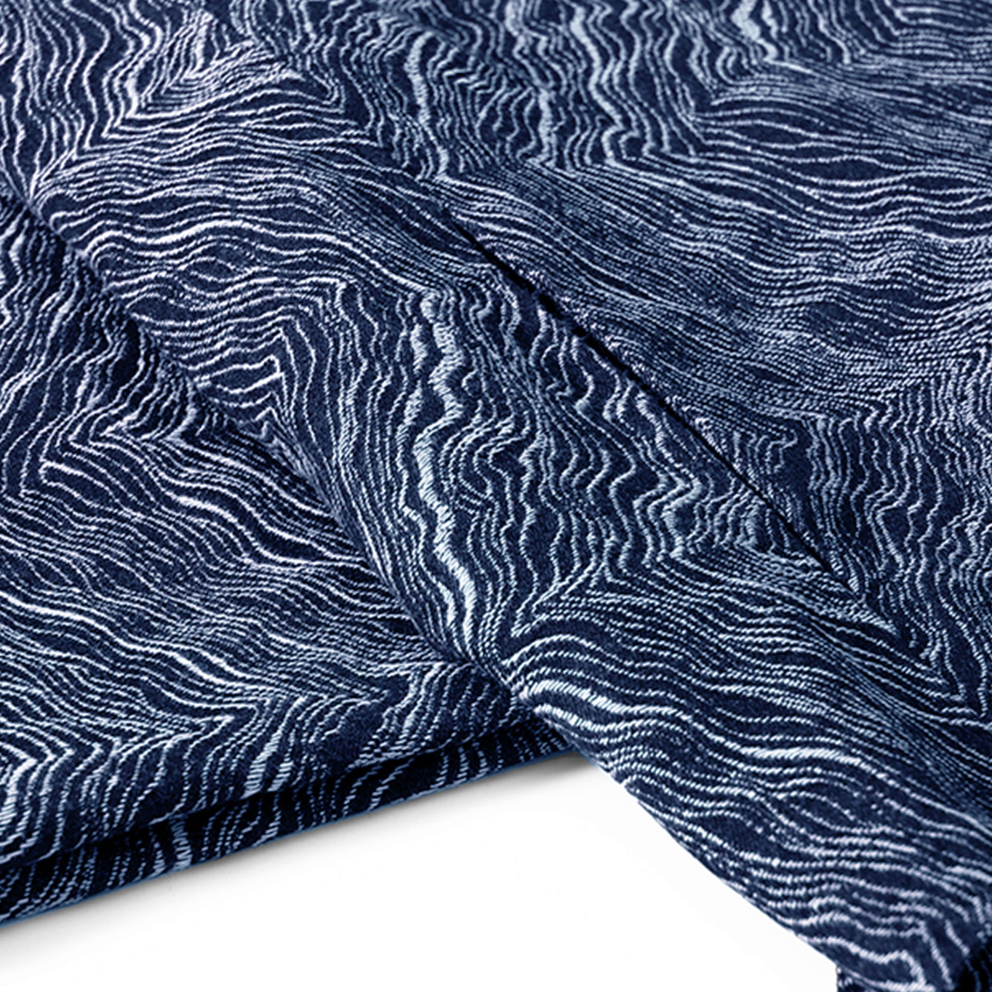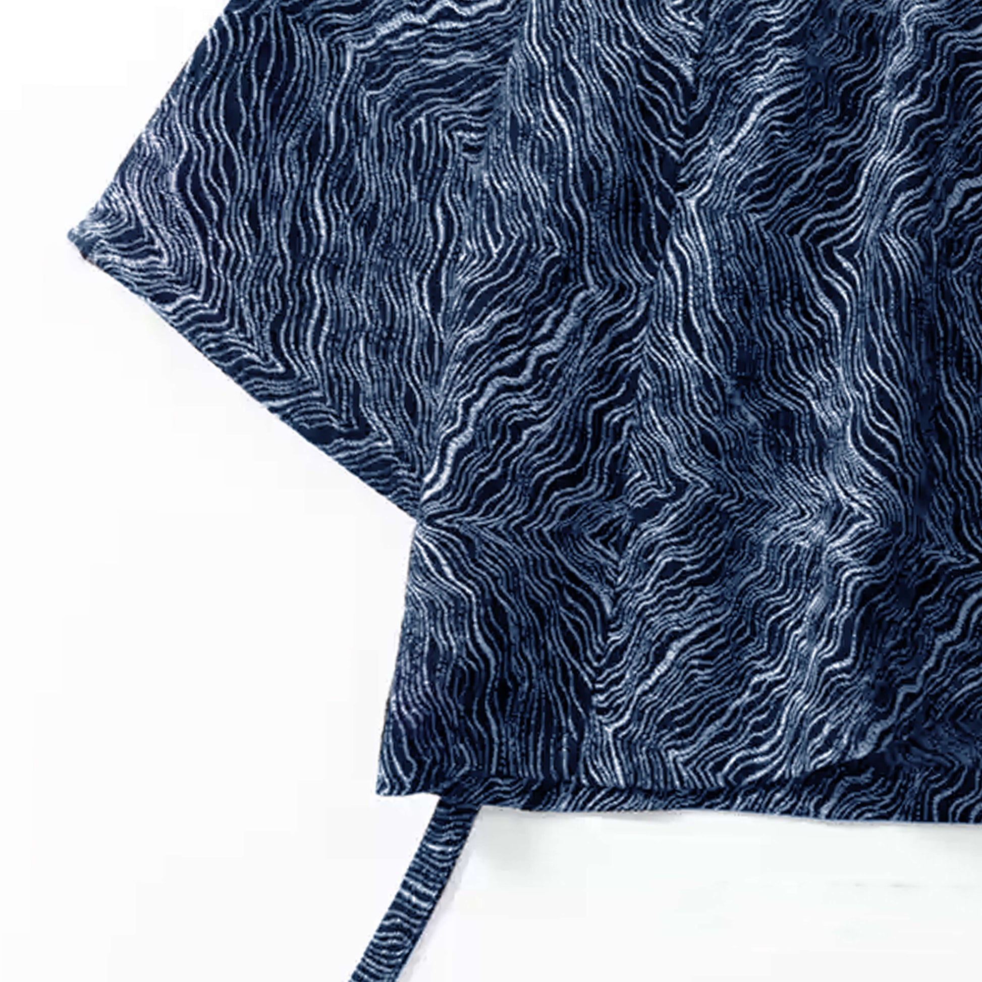 Carefully sewn from high-quality cotton and hand-dyed in the Japanese artist design – the iconic 'Blue Ocean Waves' pattern – this [Kimono Haori Jacket] presents a uniquely rustic texture due to its subtly uneven weave.