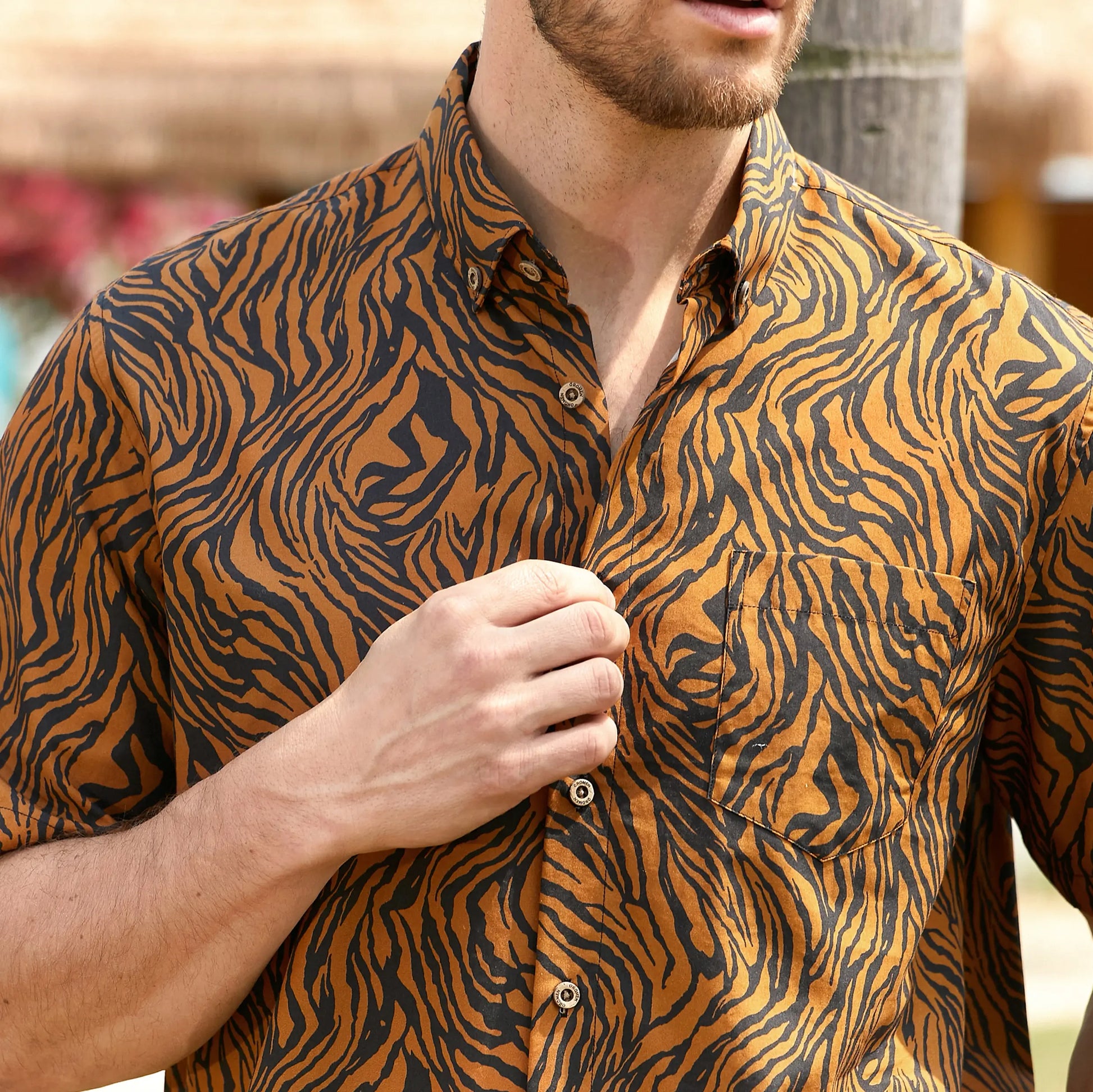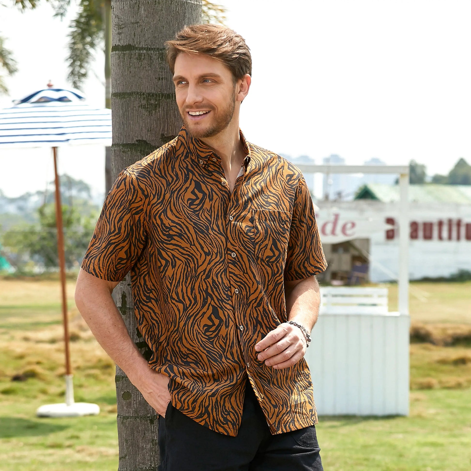 The zebra pattern is both sophisticated and natural, with distinct interlocking lines that accentuate the cleanness of the shirt, which can outline the perfect lines of the body, making you look more slender and highlighting the charm of a man.